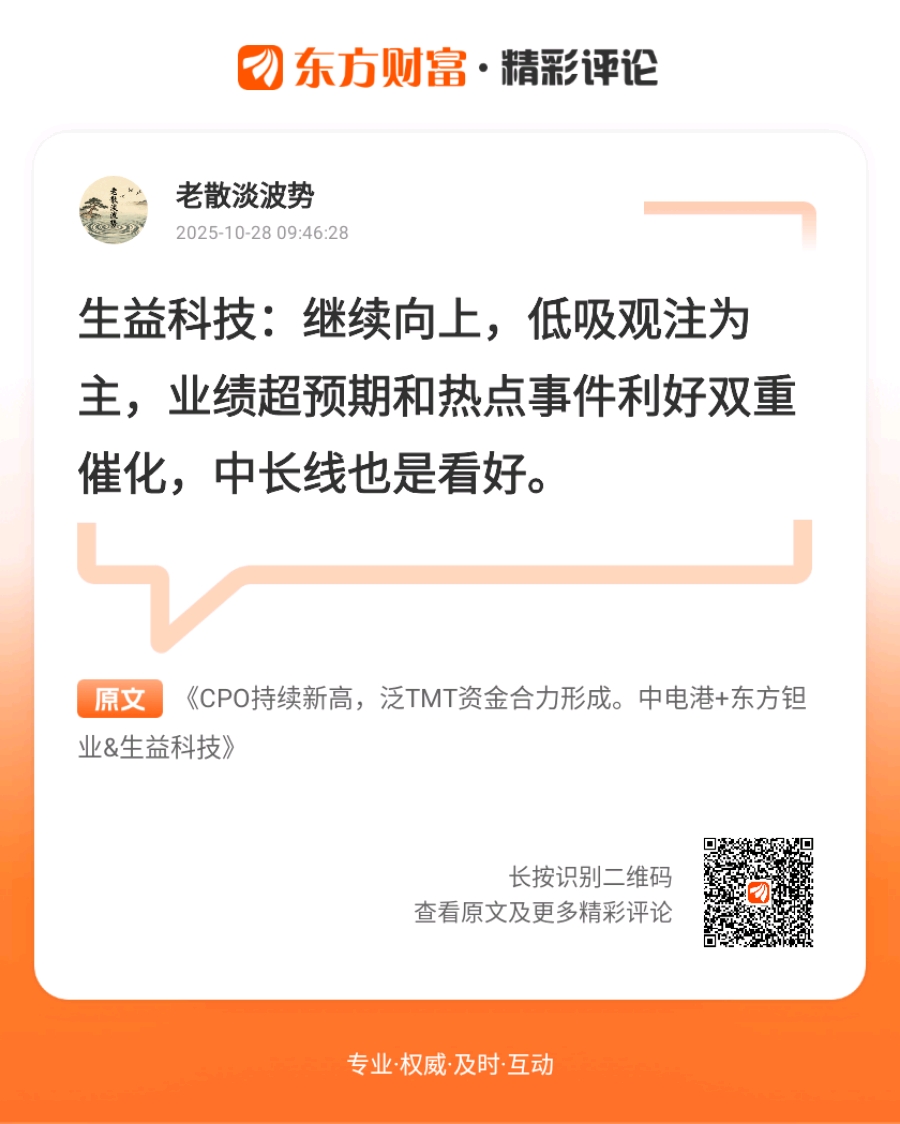 10月28日|早评:CPO持续新高,泛TMT资金合力形成
