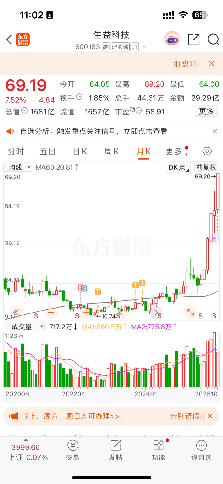 在底部拿了两年多,一年多没留意上天了