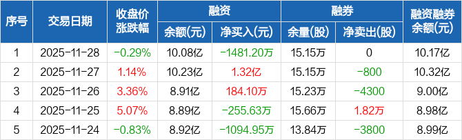 生益科技:融资净偿还1481.2万元,融资余额10.08亿元(11-28)