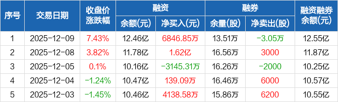 生益科技:融资净买入6846.85万元,融资余额12.46亿元(12-09)