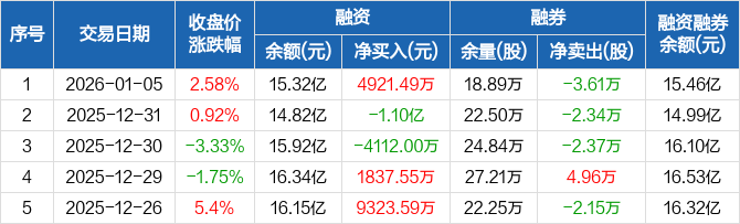 生益科技:融资净买入4921.49万元,融资余额15.32亿元(01-05)