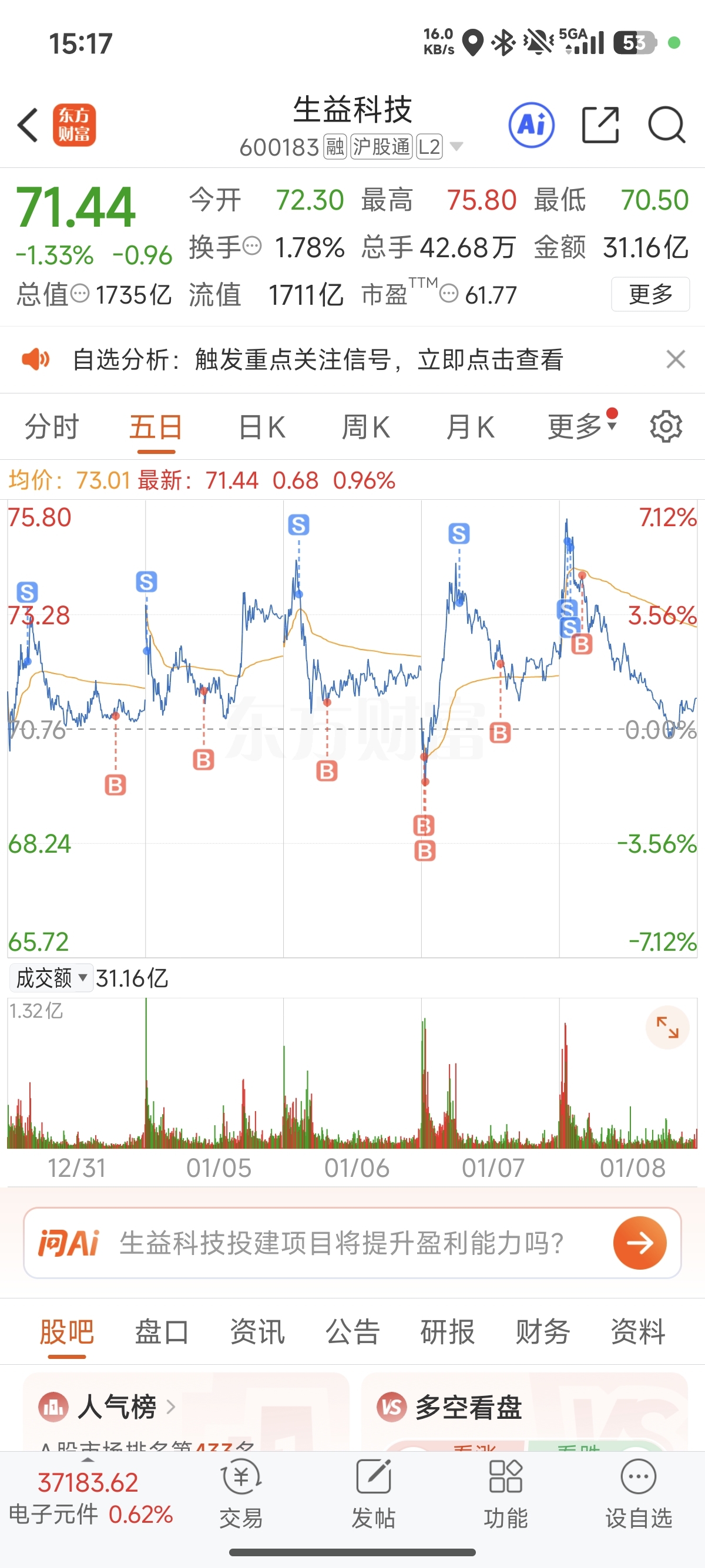 $生益科技(SH600183)$ 今天接早了。。。