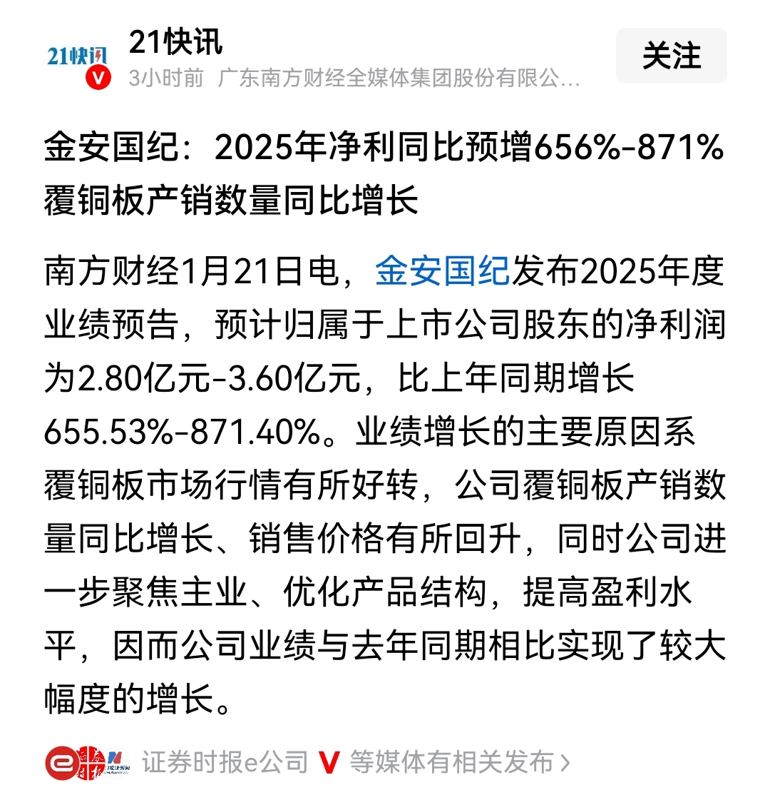 $生益科技(SH600183)$ 金安国纪这净利预增656%-871%