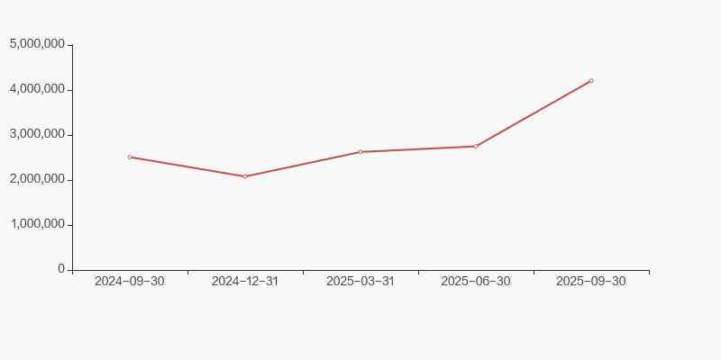 截至2025年9月30日,公司最新总股本为5.83亿股,其中流通股本为5.09亿股。户均持有流通股数量由上期的9299股上升至1.01万股,户均流通市值18.27万元。