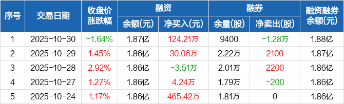 光电股份:融资净买入124.21万元,融资余额1.87亿元(10-30)