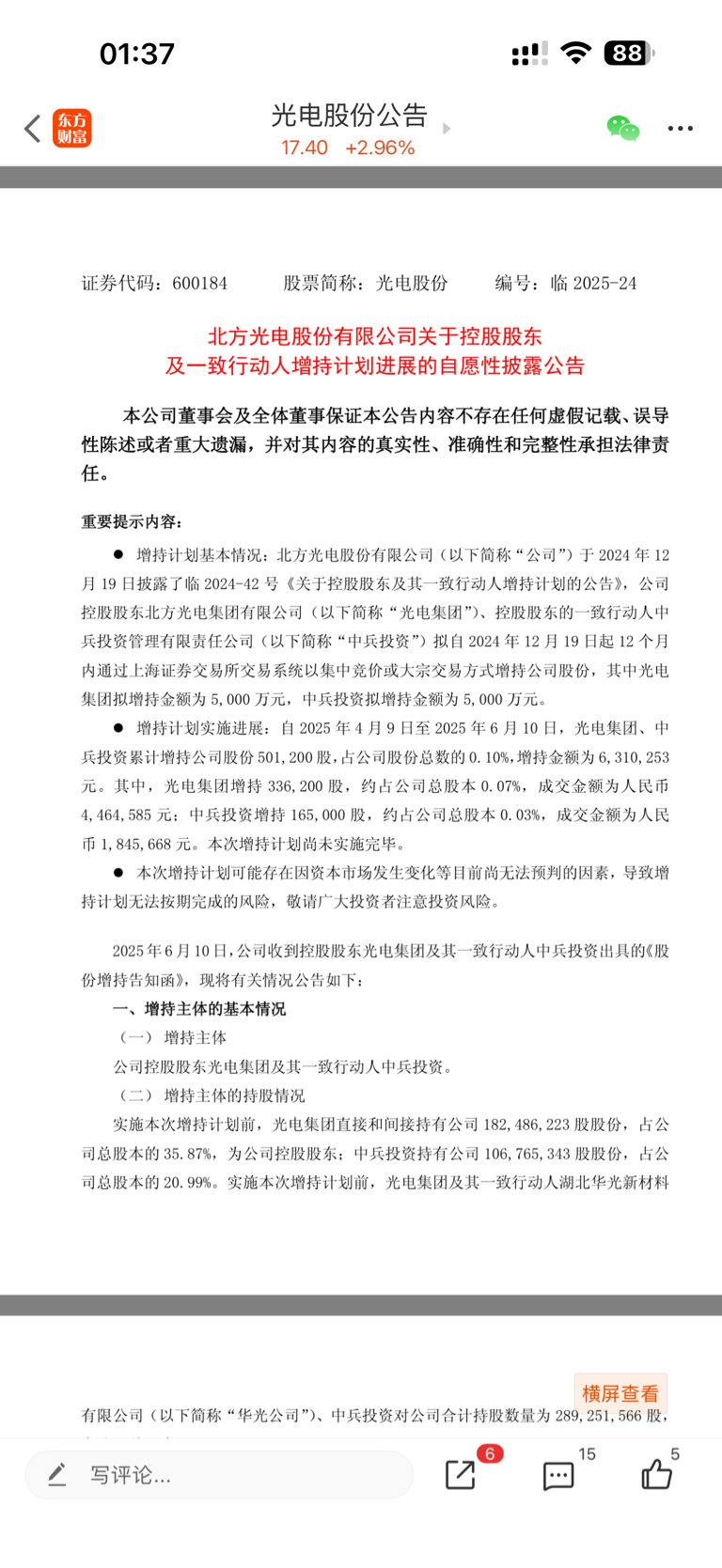 $光电股份(SH600184)$ 这种大股东增持的票不涨,真的是天理难容