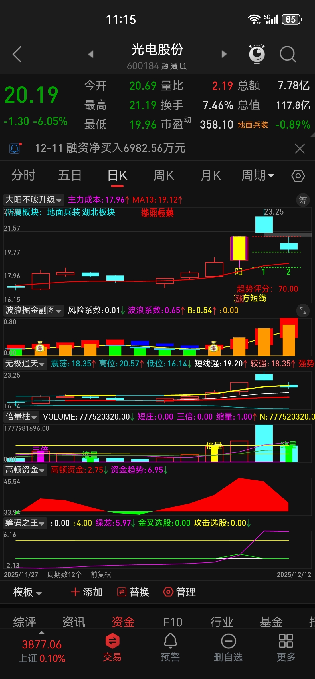 $光电股份(SH600184)$ 回踩二买位置就看能不能撑住了,这个位置没有必要割肉了。
