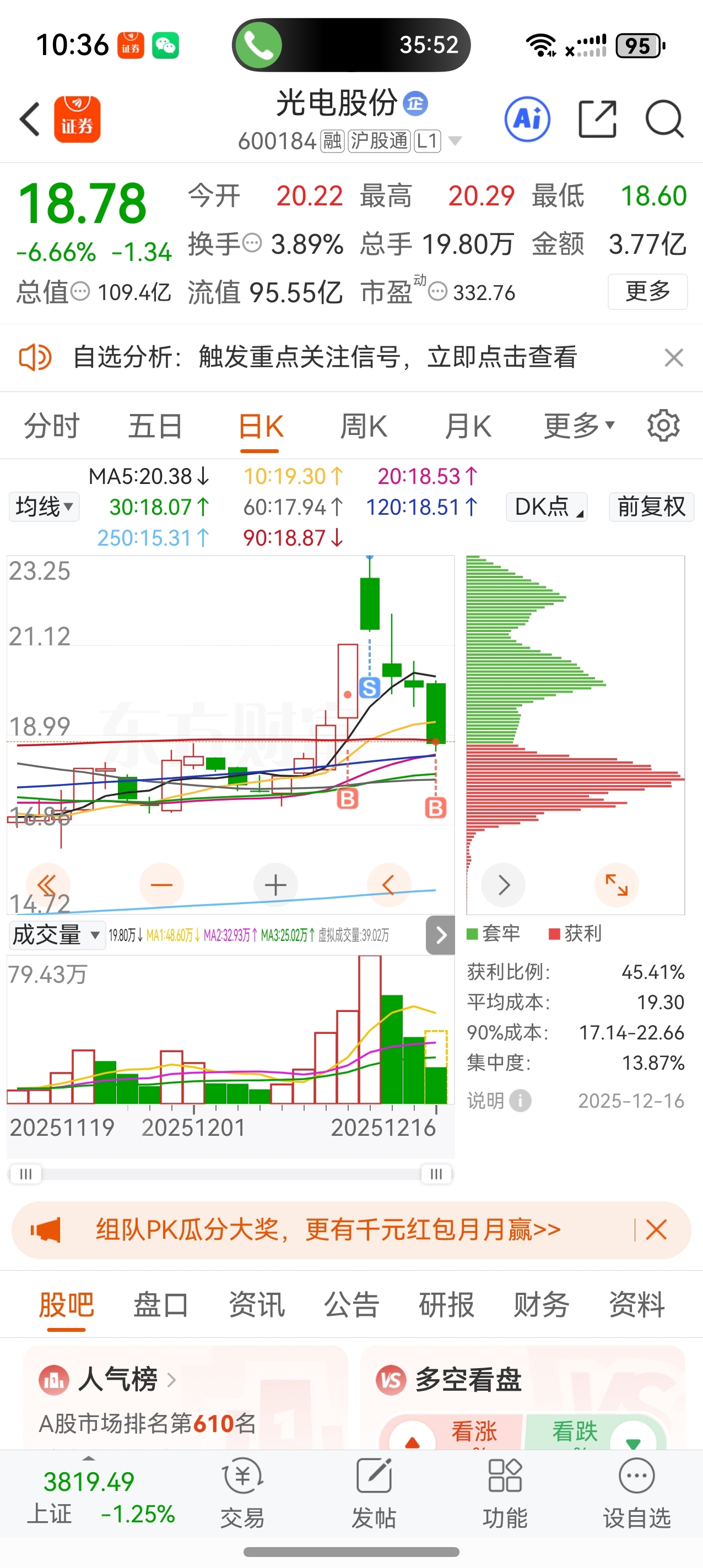 $光电股份(SH600184)$ 建个仓,比这个价位低都是机会
