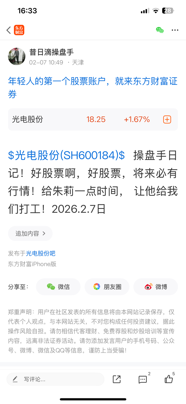 温馨提示: 1.根据《证券法》规定,禁止编造、传播虚假信息或者误导性信息,扰乱证券市场;2.用户在本社区发表的所有资料、言论等仅代表个人观点,与本网站立场无关,不对您构成任何投资建议。用户应基于自己的独立判断,自行决定证券投资并承担相应风险。《东方财富社区管理规定》