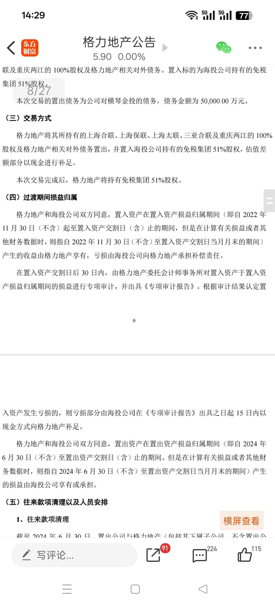 $格力地产(SH600185)$