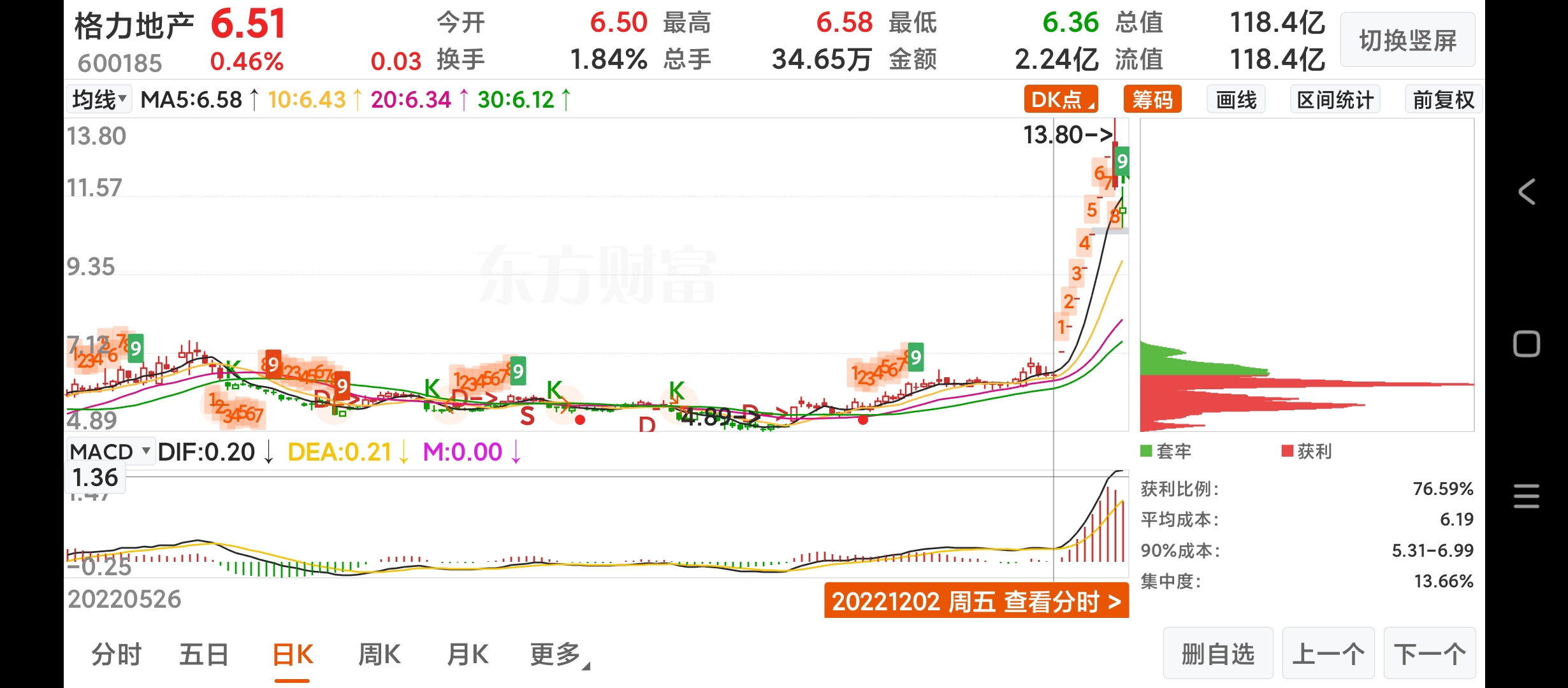 $格力地产(SH600185)$ 坚定无助筹码上次都是10连,