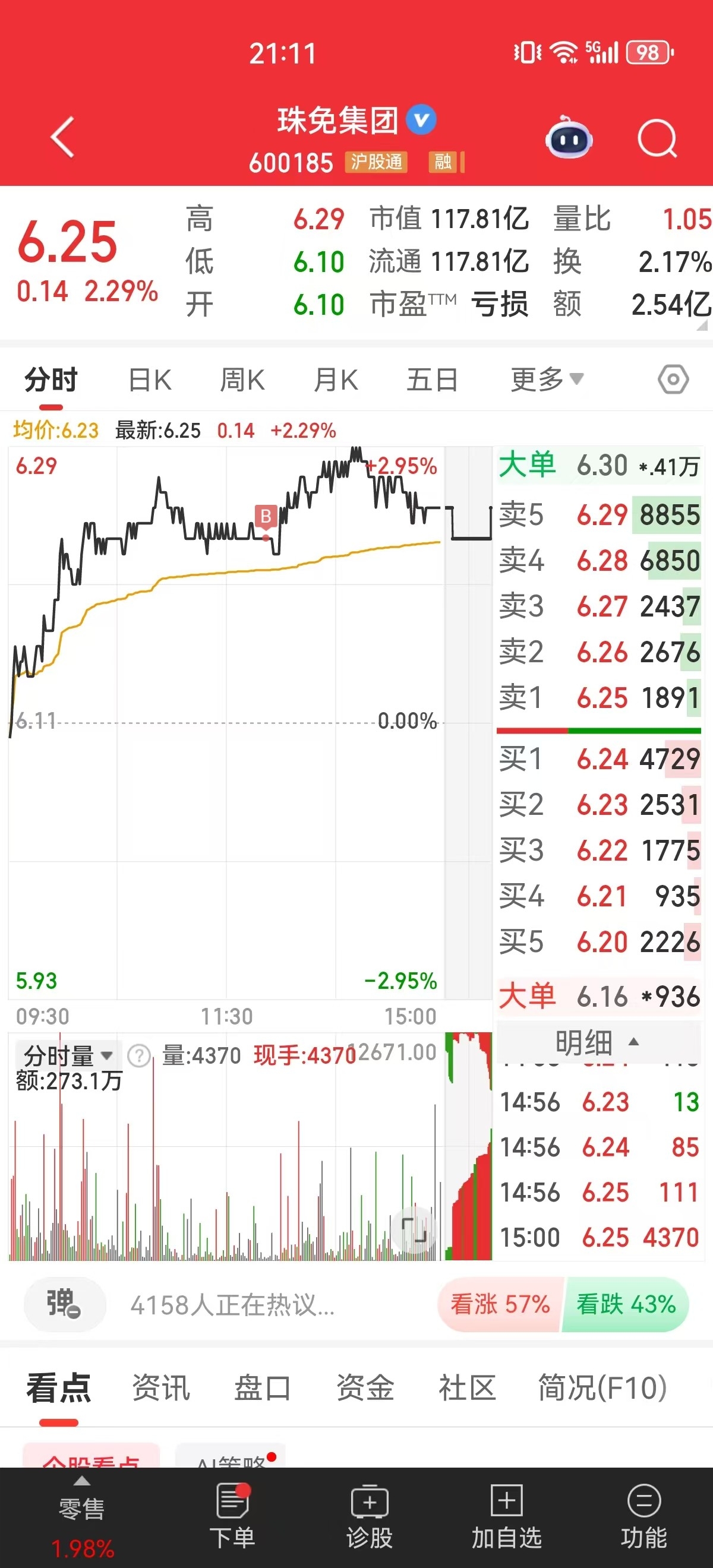$珠免集团(SH600185)$ 今进入600185 珠免集团,零售+免税+资产重组,今天放量试突压力6.3附近,日线KDJ已形成金叉,资金做多强烈,预期会有不错表现
