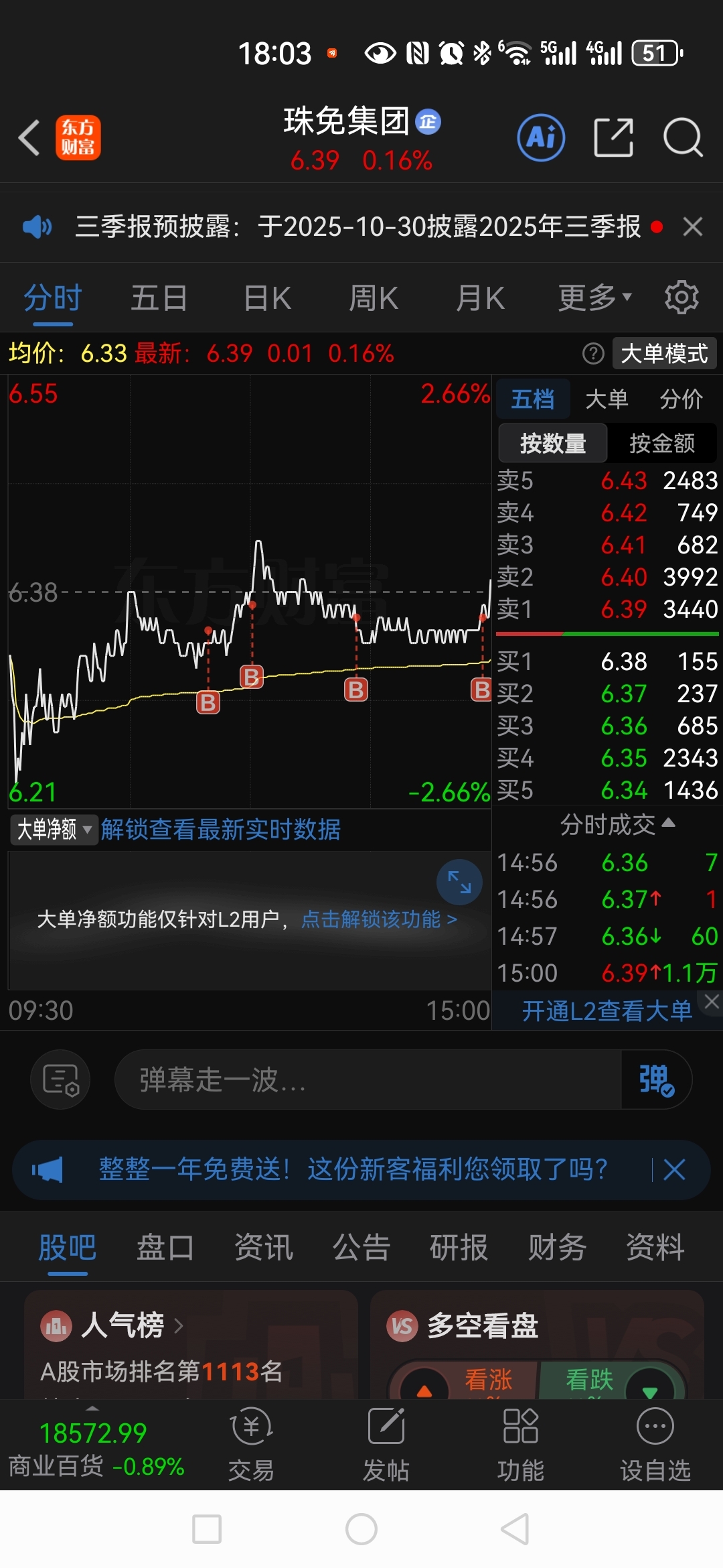 $珠免集团(SH600185)$ 来!给我出季报!!!!!!!