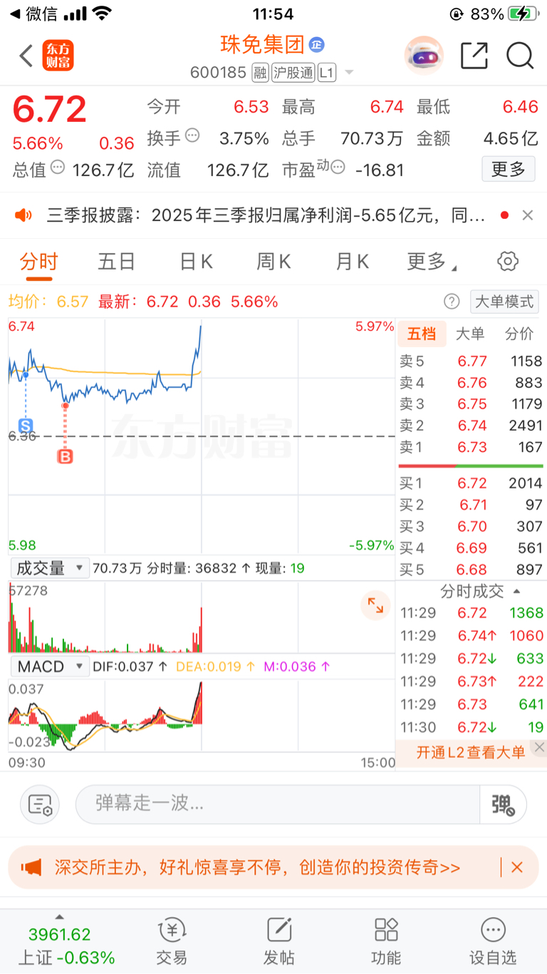 $珠免集团(SH600185)$ 收盘给了个大惊喜