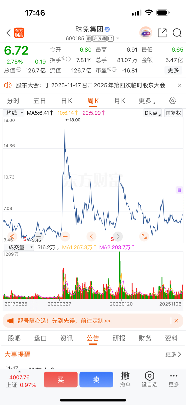 $珠免集团(SH600185)$ 利空释放完了,等预计6个月后剥离地产业务,剩下就是一路走高,我看好破历史高位18元。价值投资者就买了别动,投资者就不用看我这个帖子了。百亿市值,6元低价股,重组,免税,消费,新业务大幅盈利等太多利好叠加一起。今年还尚未涨过,这种股票资金最喜欢了,等风口,等被抬轿子,半年初步目标20元。