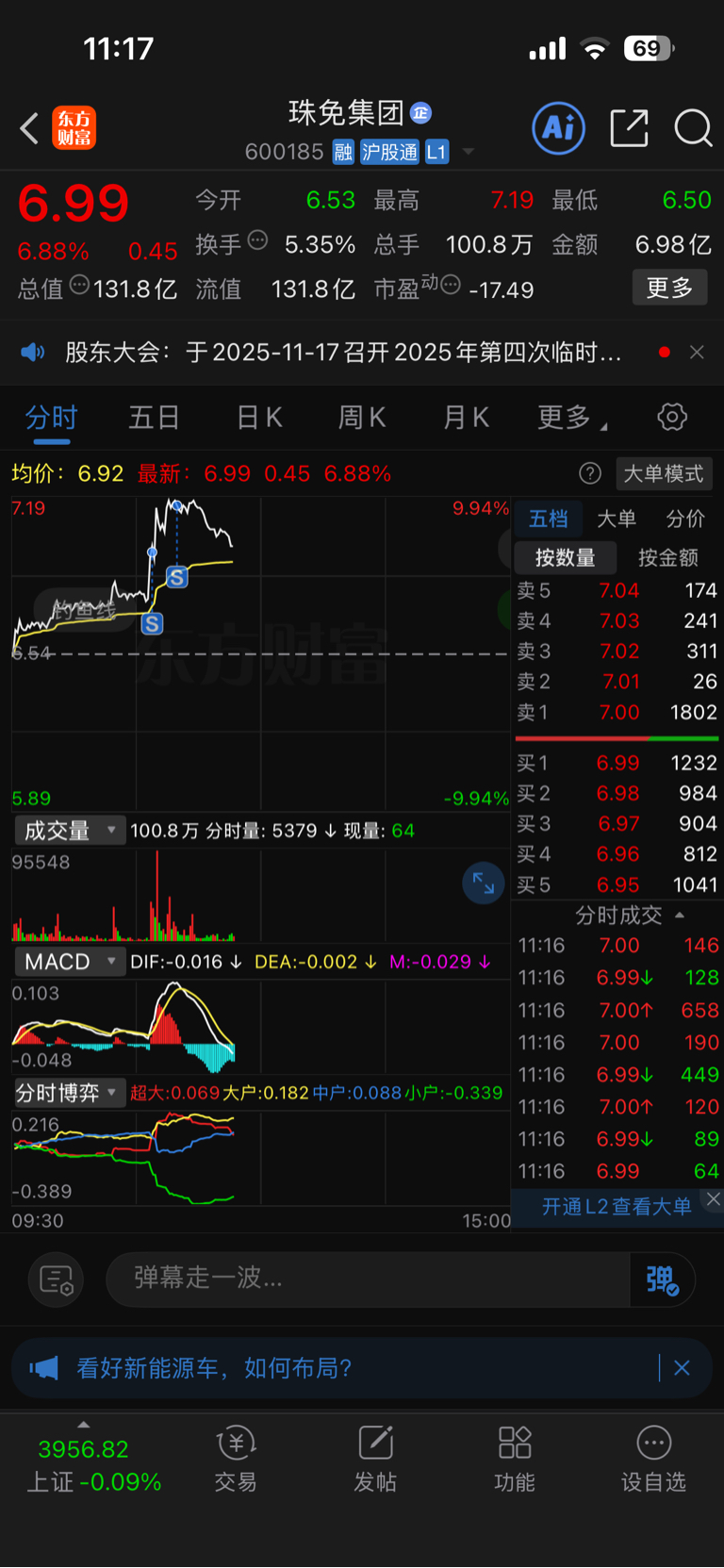 $珠免集团(SH600185)$ 好股不回调,大家好自为之吧,祝大家发财