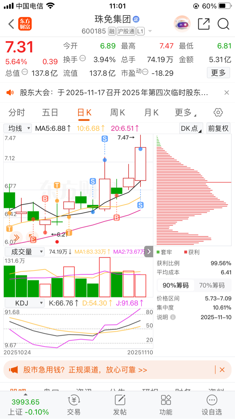 $珠免集团(SH600185)$ 卖飞了