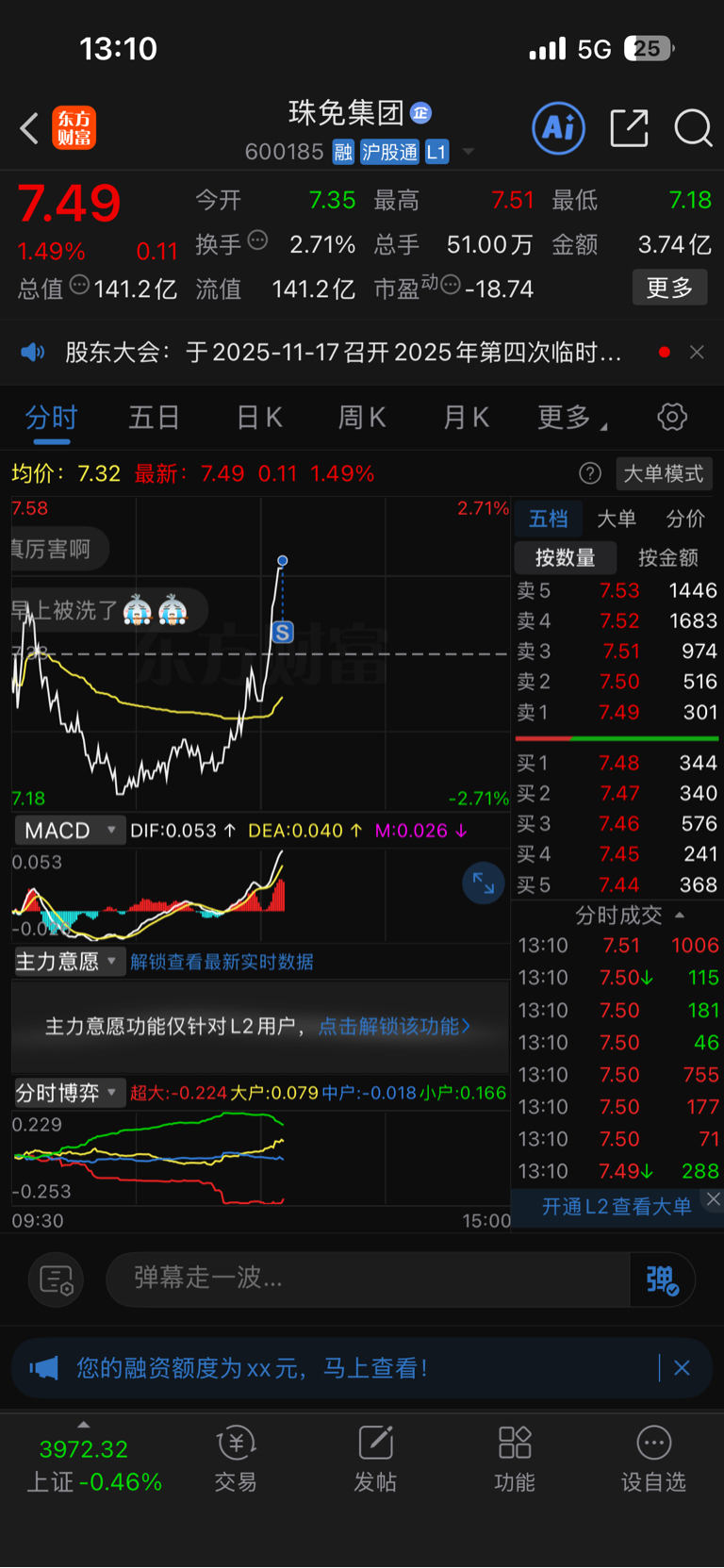 $珠免集团(SH600185)$ 卖错也得卖 拉升就得卖