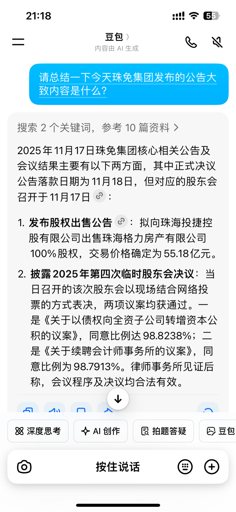 $珠免集团(SH600185)$ 这Ai总结的靠谱不? 公告太多了看的眼疼