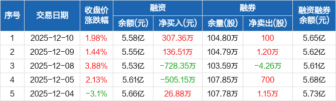 珠免集团:融资净买入307.36万元,融资余额5.58亿元(12-10)