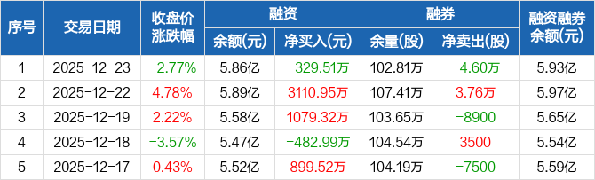 珠免集团:融资净偿还329.51万元,融资余额5.86亿元(12-23)