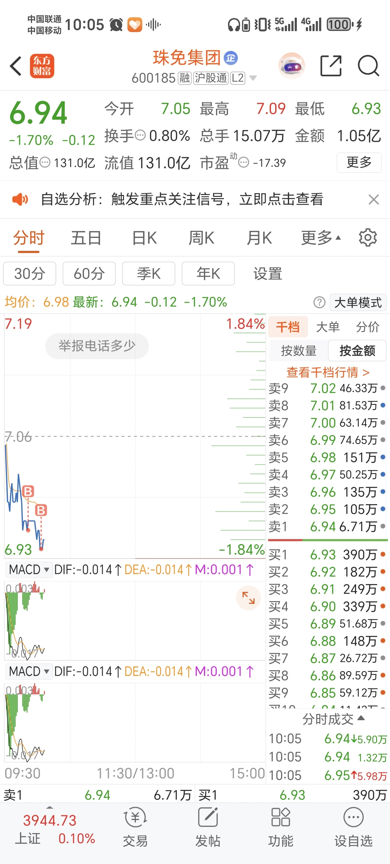 $珠免集团(SH600185)$ 谁都不服,就服珠免空军