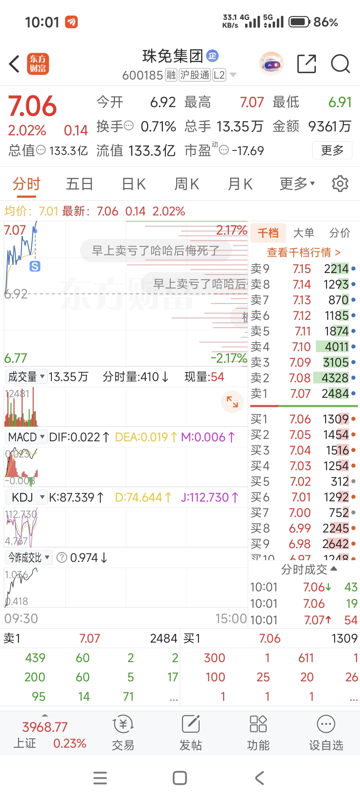 $珠免集团(SH600185)$ 我卖就可以涨了
