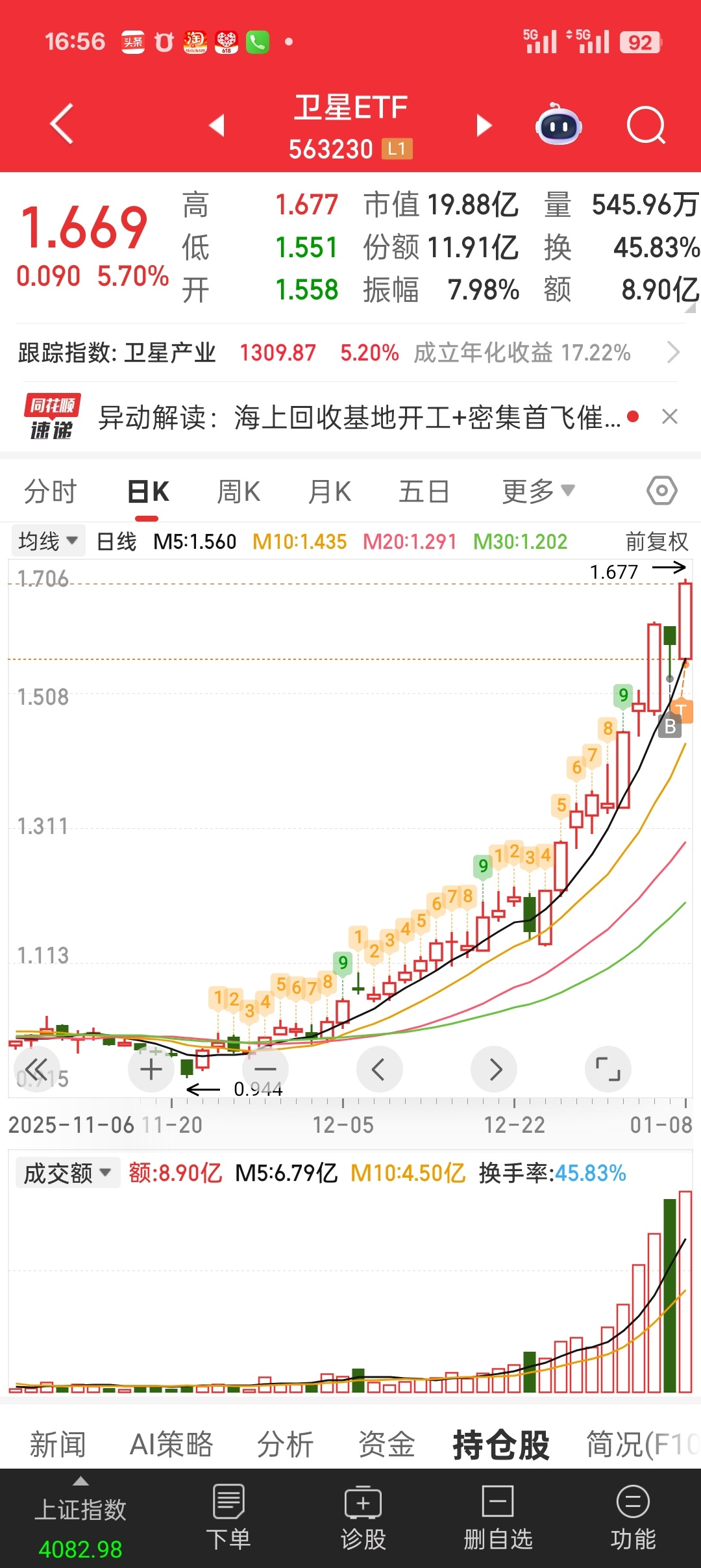 7.09卖的煮面 本来打算6.7追回来的做个大t 后面放弃 昨天追的航天ETF 今天就5个点 你说你们图啥
