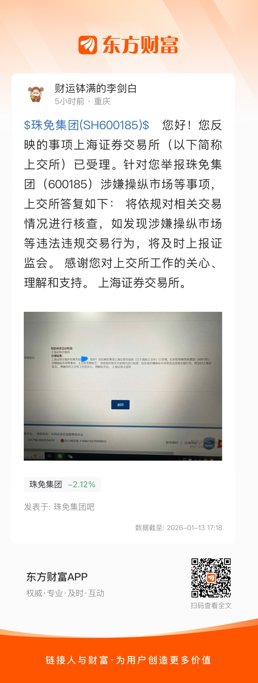 $珠免集团(SH600185)$ 昨天发的帖子居然被删除了,这家公司不简单啊。