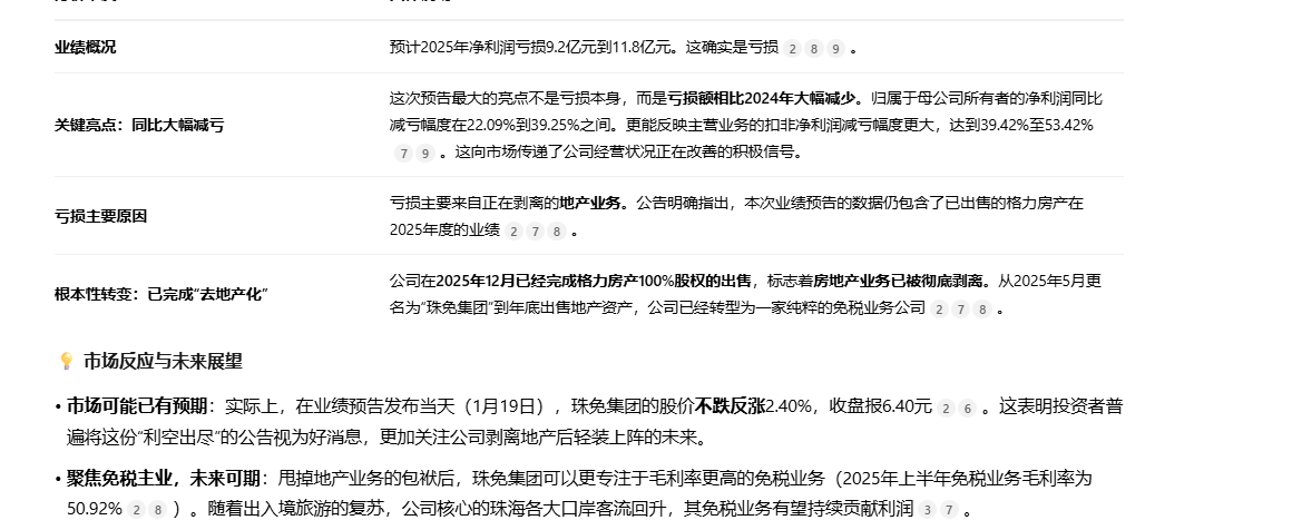 利空出境是利好,其次从报告上看,拖累公司的是地产,亏损主要原因还是地产业务拖累,但关键点是公司已经在2025年12月完成格力房产100%股权的出售,彻底告别地产业务。现在免税业务收入占比超过60%,毛利率高达50.92%,这才是未来看点,看好就买,不看好就卖,个人观点,不喜勿碰