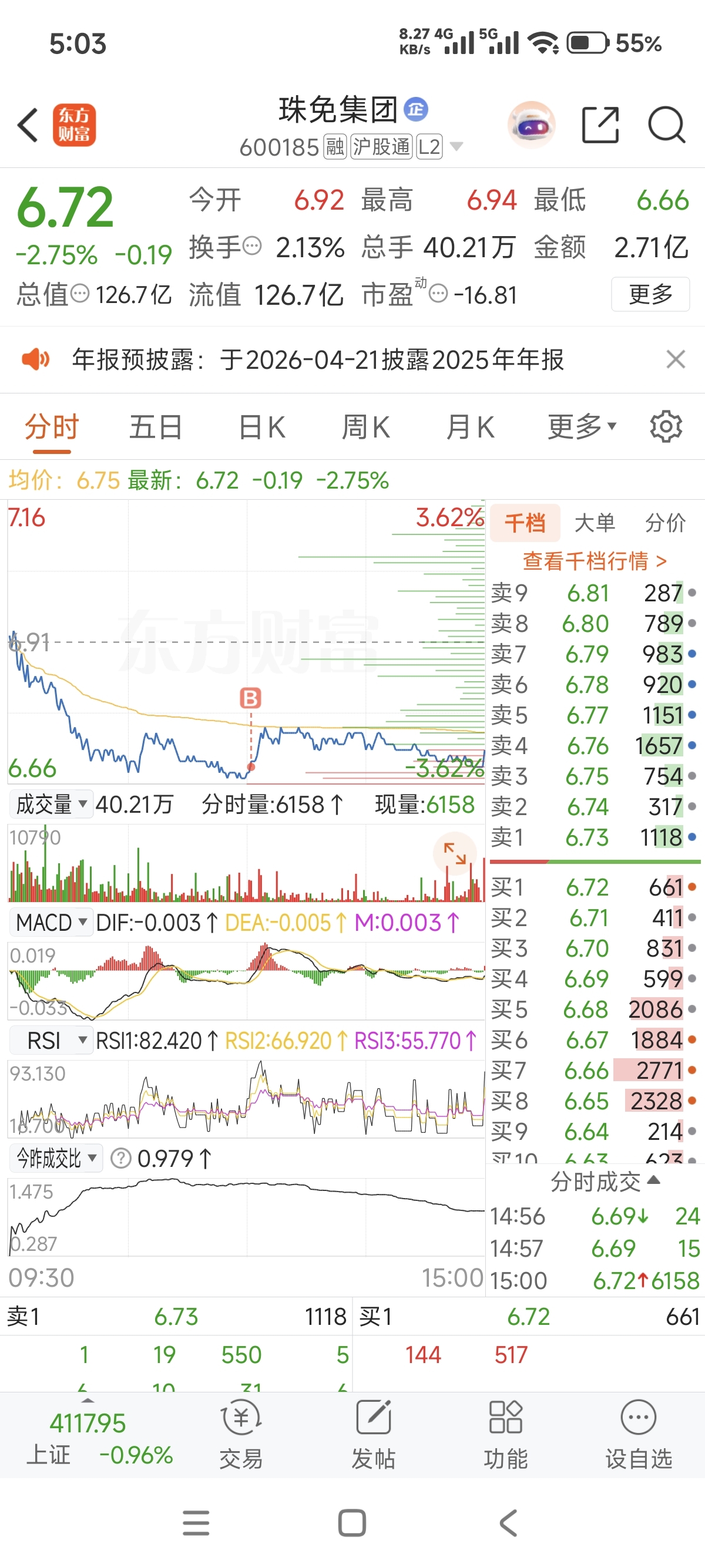 $珠免集团(SH600185)$ 各位小心了,我买了了,一般会跌