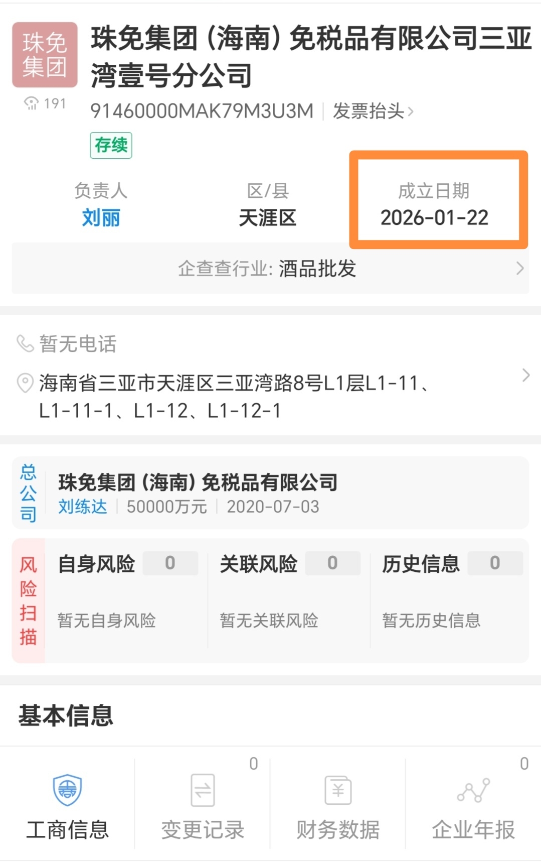这个公司就是刚成立的,就是2月11日要开业的免税店