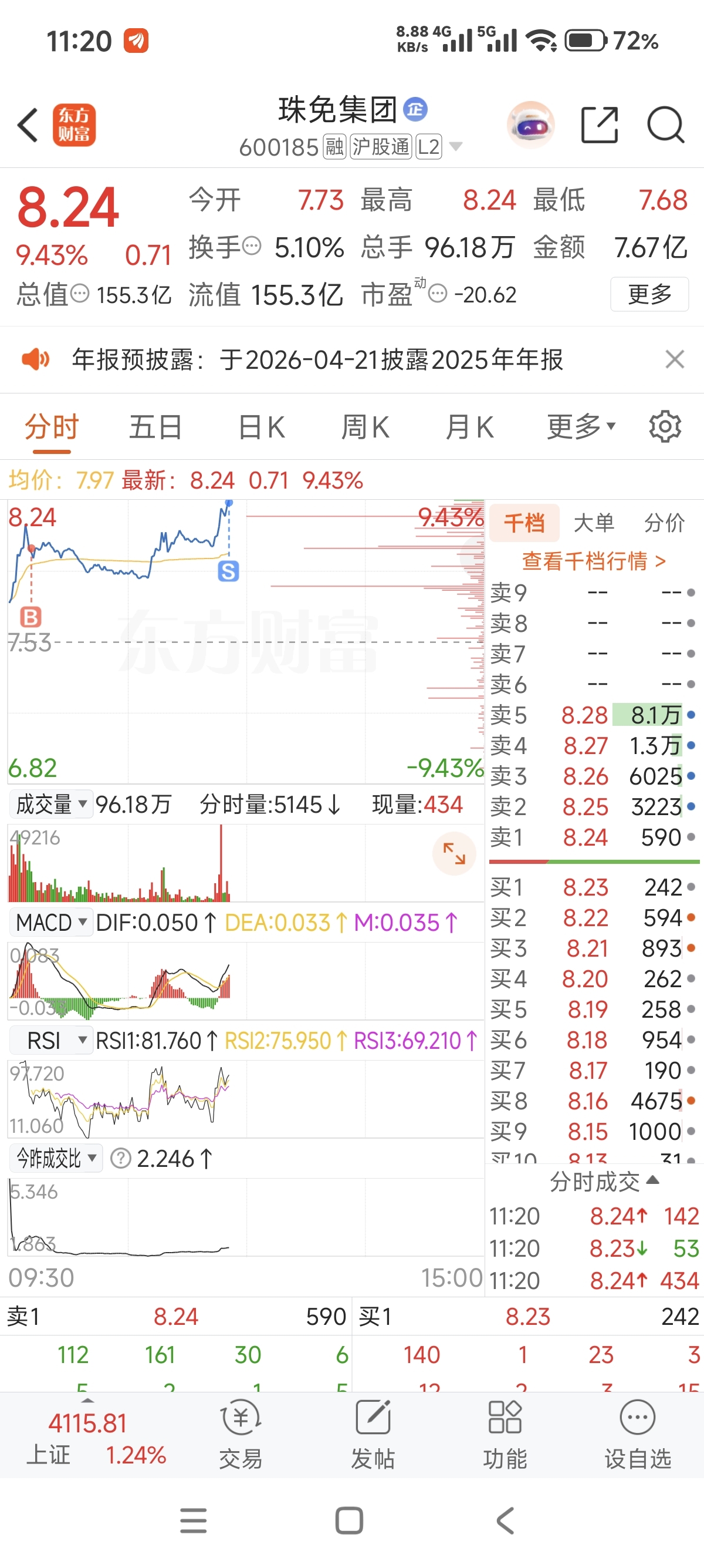 $珠免集团(SH600185)$ 资金有限,T个饭钱,加油,看好你珠免