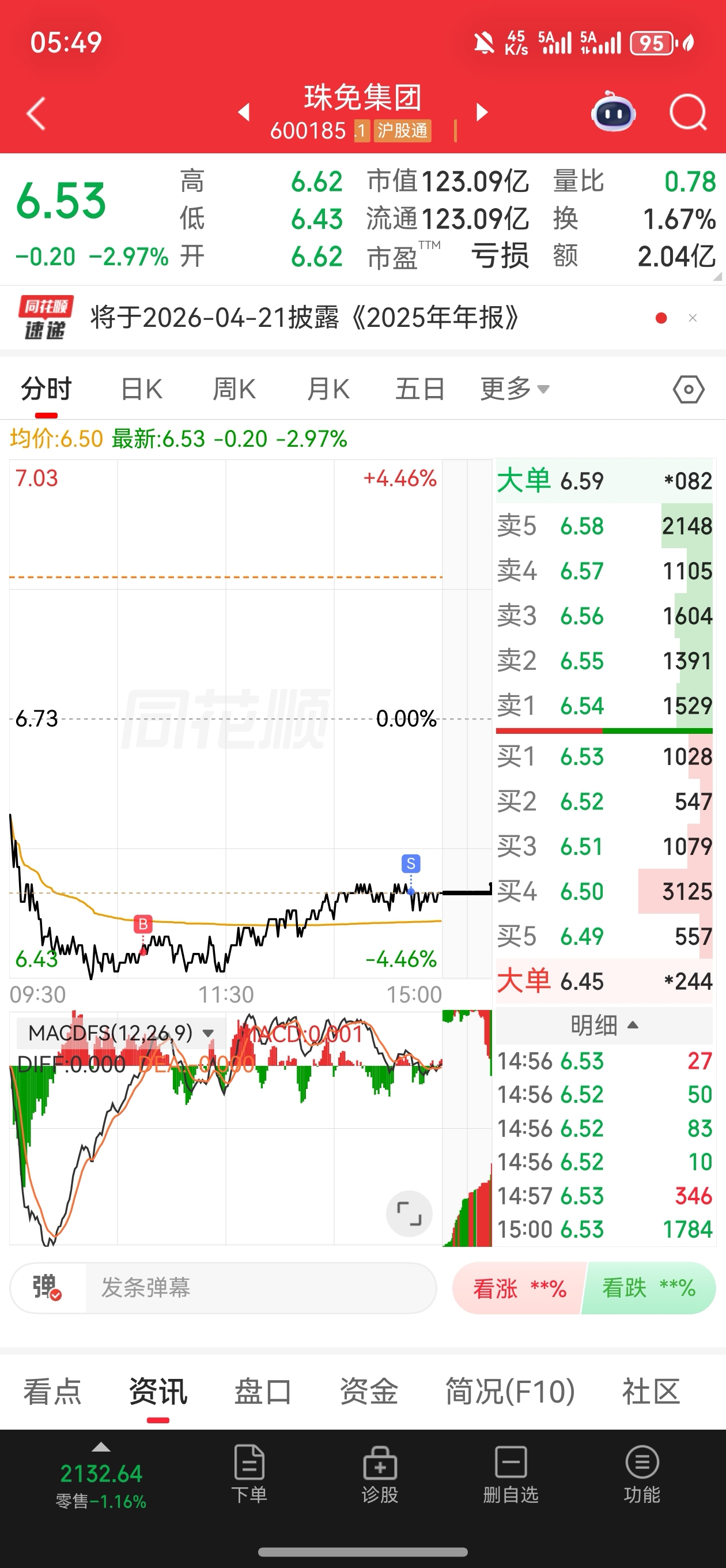 $珠免集团(SH600185)$ 猛T7分钱