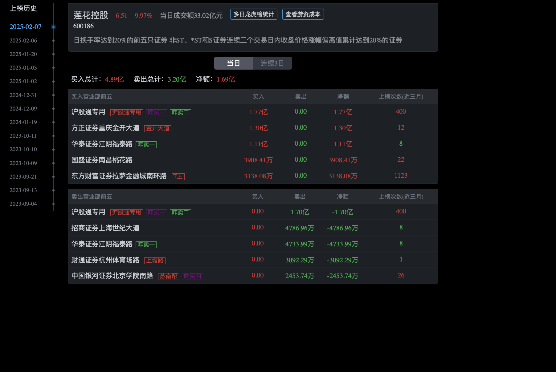 莲花控股今日游资龙虎榜席位上榜数据如下!