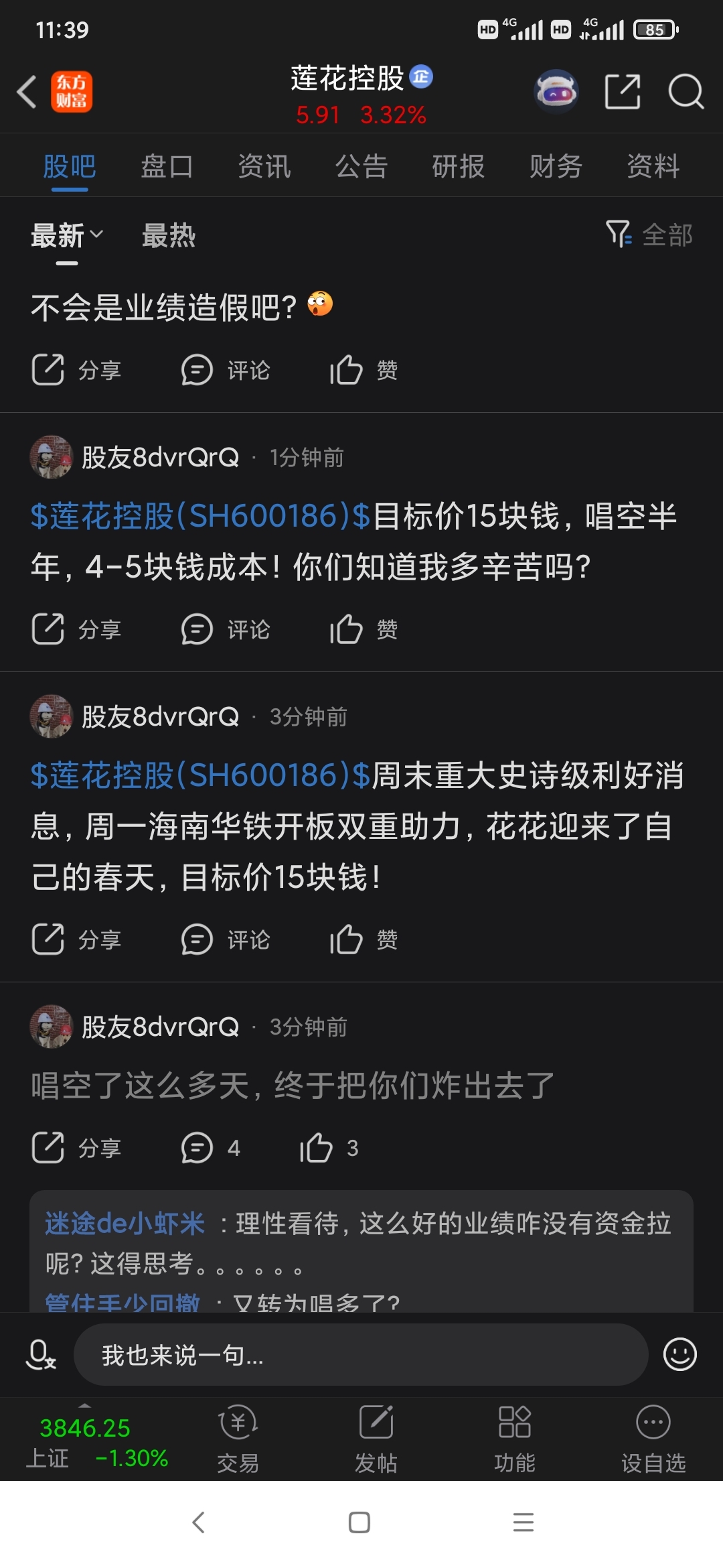 温馨提示: 1.根据《证券法》规定,禁止编造、传播虚假信息或者误导性信息,扰乱证券市场;2.用户在本社区发表的所有资料、言论等仅代表个人观点,与本网站立场无关,不对您构成任何投资建议。用户应基于自己的独立判断,自行决定证券投资并承担相应风险。《东方财富社区管理规定》