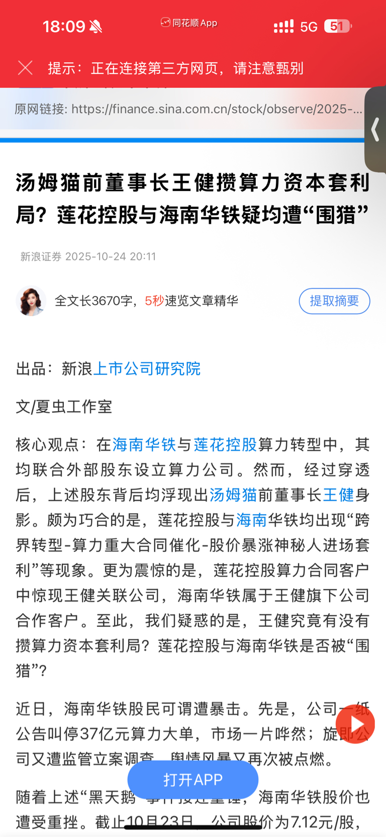 $莲花控股(SH600186)$ 小作文是真的,同花顺提前发布了