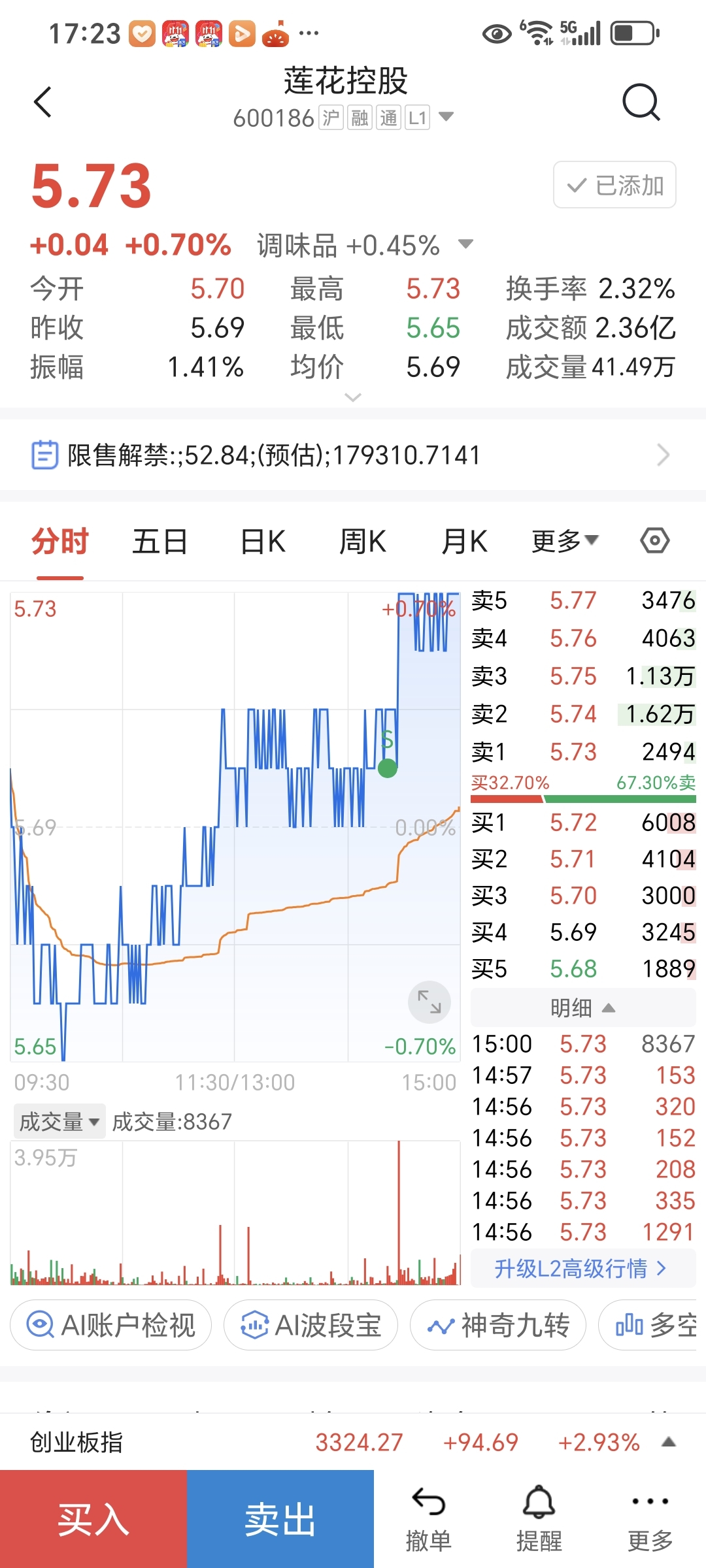 $莲花控股(SH600186)$ 我曰这股票的操盘手的,25年开年大盘3200多点,莲花6.27元,现在大盘4000多点了,你掉了10%,完美错过牛市!忍受不了了,卖了!