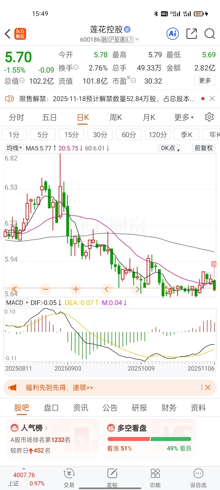 $莲花控股(SH600186)$ 我要来嚯嚯了