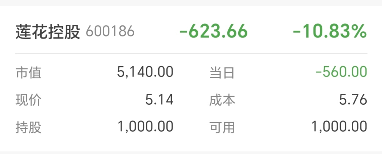 $莲花控股(SH600186)$ 卡bug了,现价怎么变成5.14了