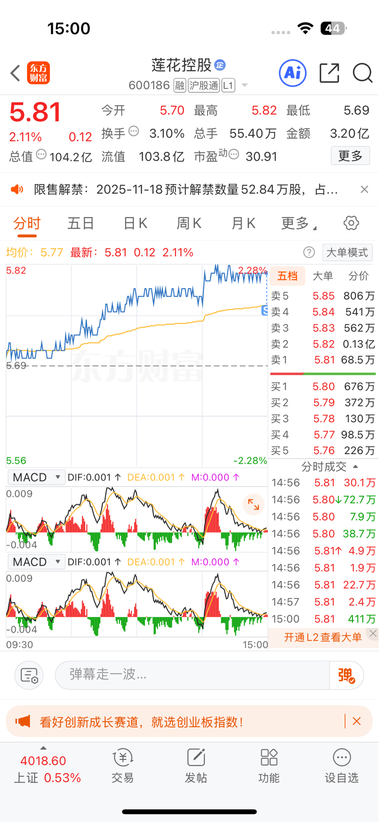 $莲花控股(SH600186)$ 太高了,先出了