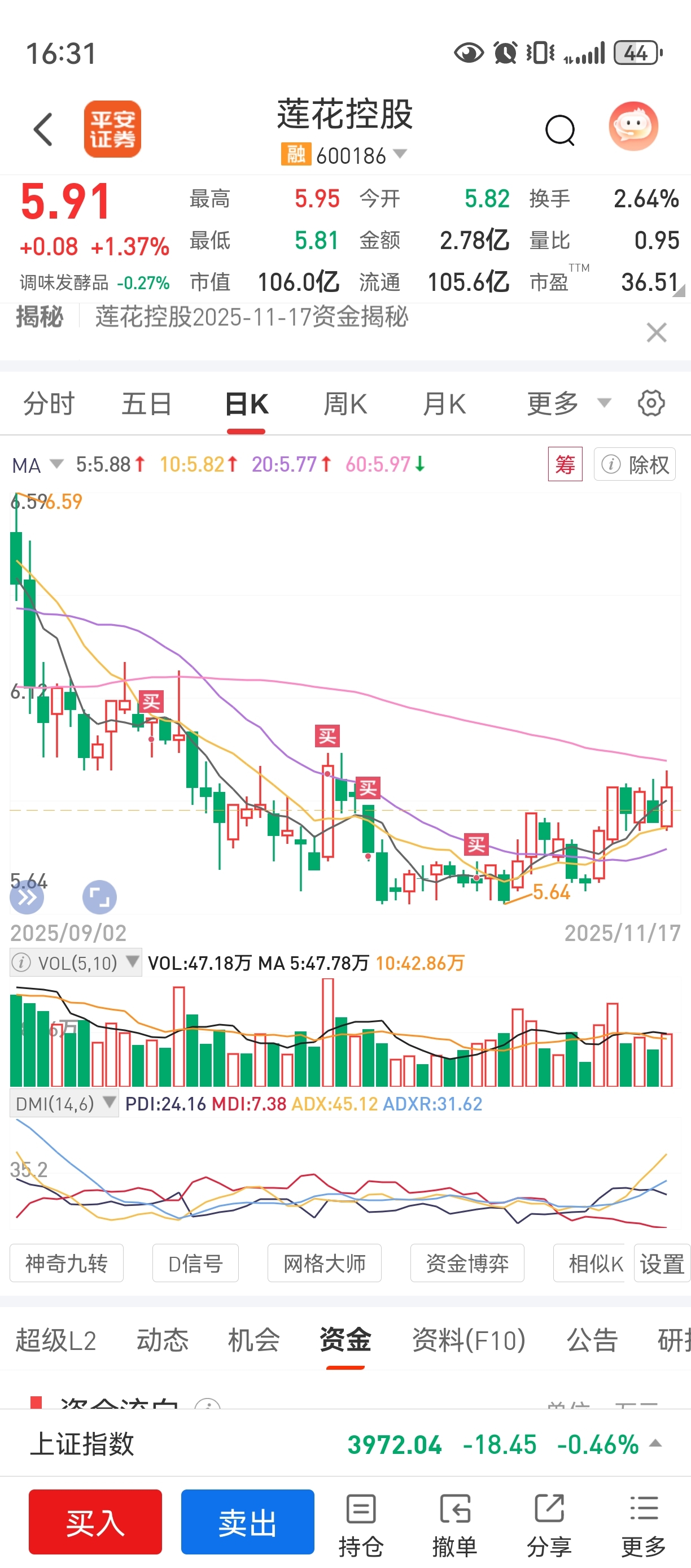 $莲花控股(SH600186)$ 还亏3个点不要让我解套啊,不然不舒服,套着心要踏实些