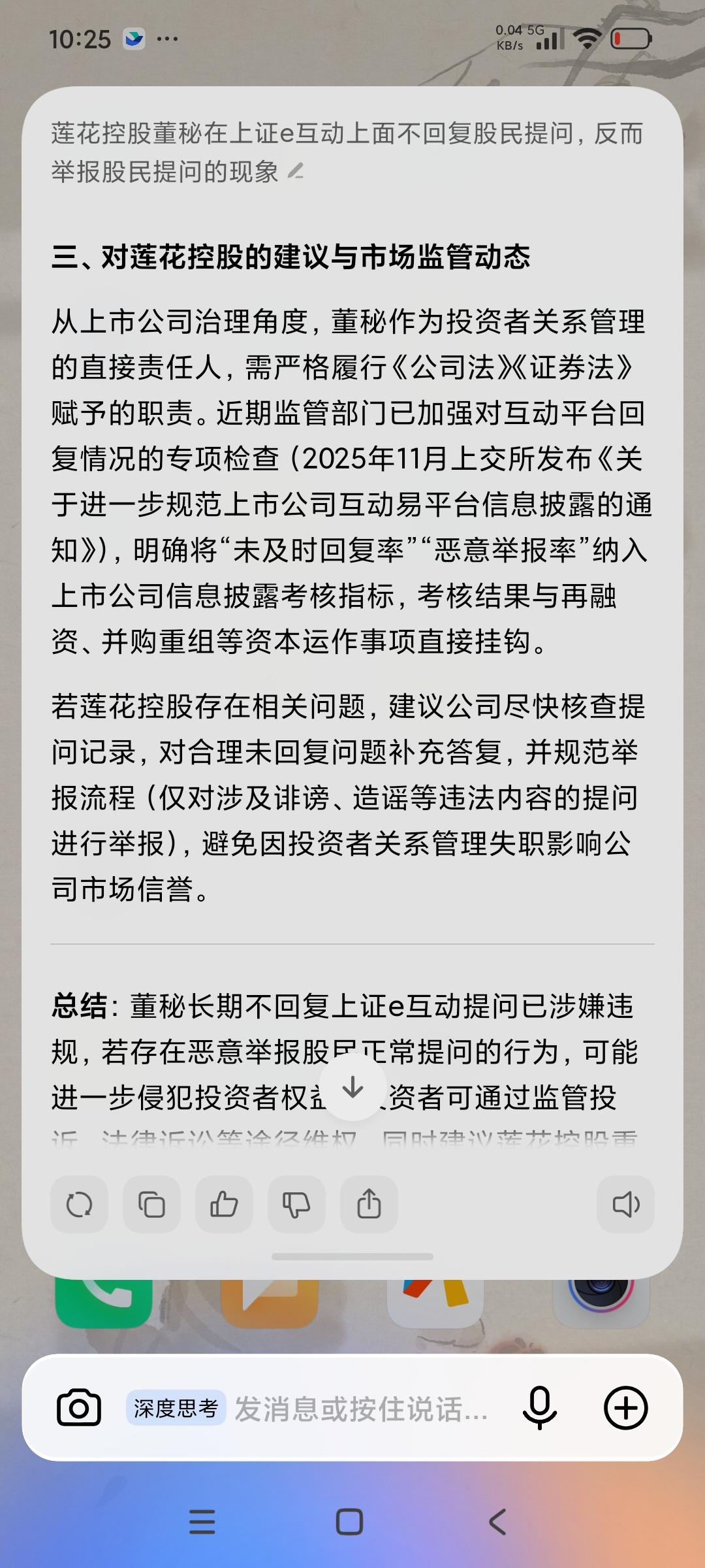 $莲花控股(SH600186)$ 莲花控股董秘说他们只在上证e互动上面回复,提问了他们又不回复,但是,大家多提问,证监会对回复率有考核。他们不让咱们好受,咱们也别让他好受