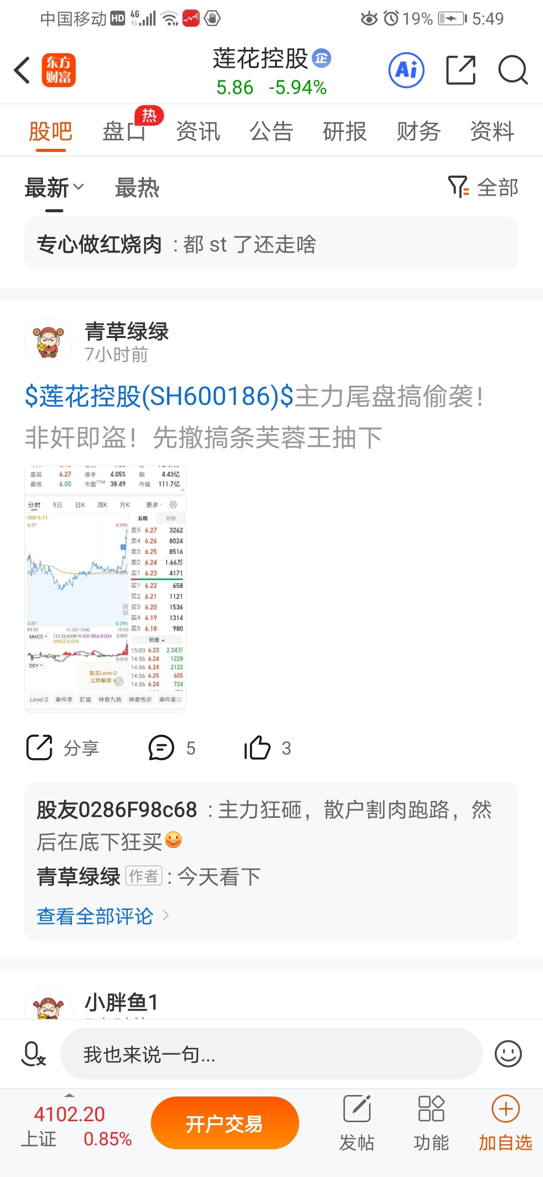 $莲花控股(SH600186)$ 昨天的尾盘拉升记得吗兄弟们