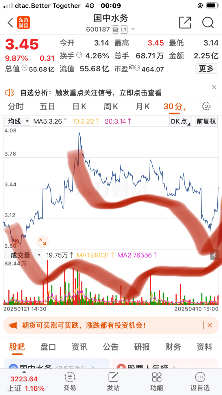 $国中水务(SH600187)$ 明天会不会继续板呢?答案是否定的 打开30分钟K 从美学对称性考虑 貌似应该构筑一个头肩底形态 的右肩所以本人预判余下到开牌的日子 是一个缓慢重心上移的右肩形态