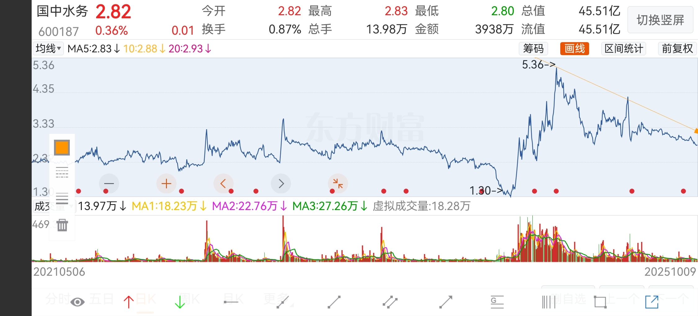 $国中水务(SH600187)$ 一路往下,2.3.到1.3慢慢等