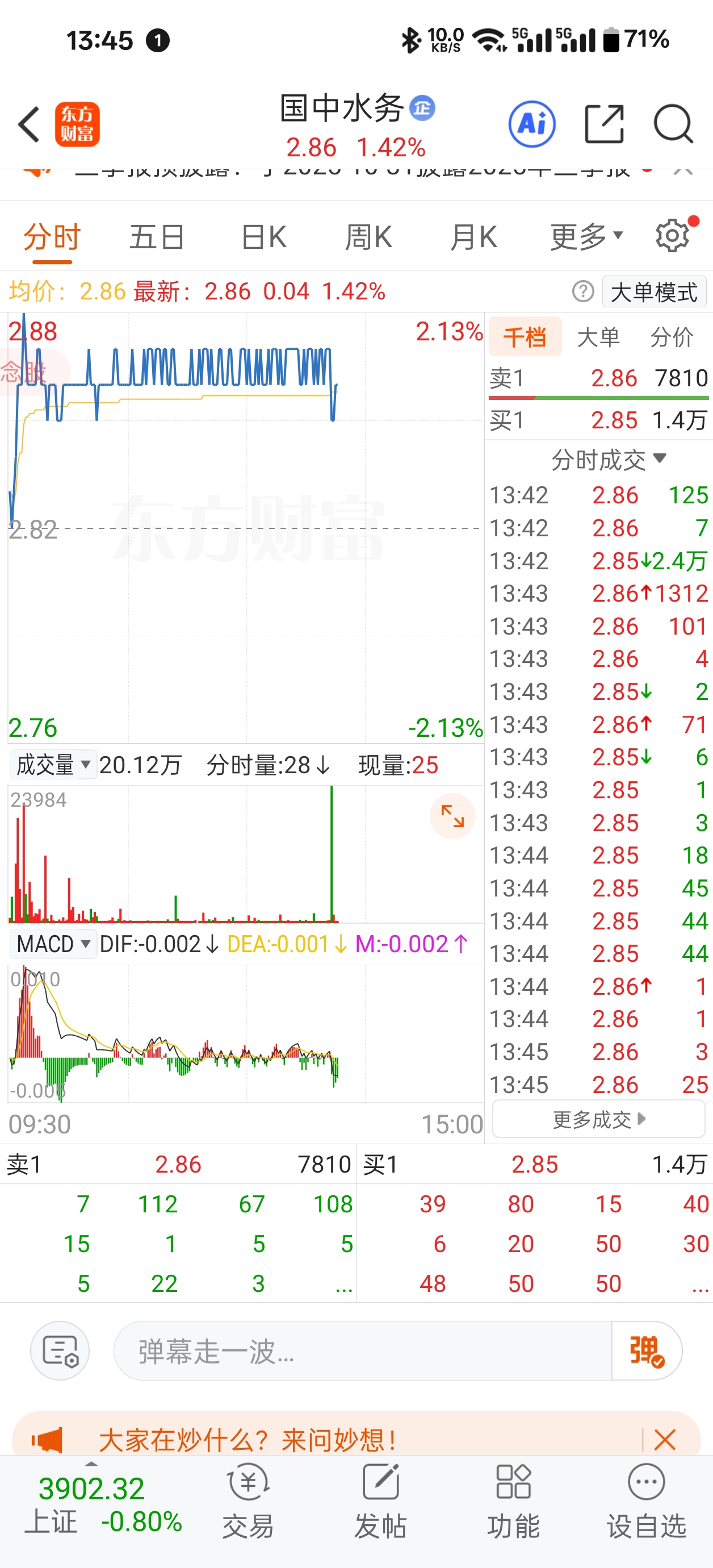 $国中水务(SH600187)$ 一根大棒子砸盘