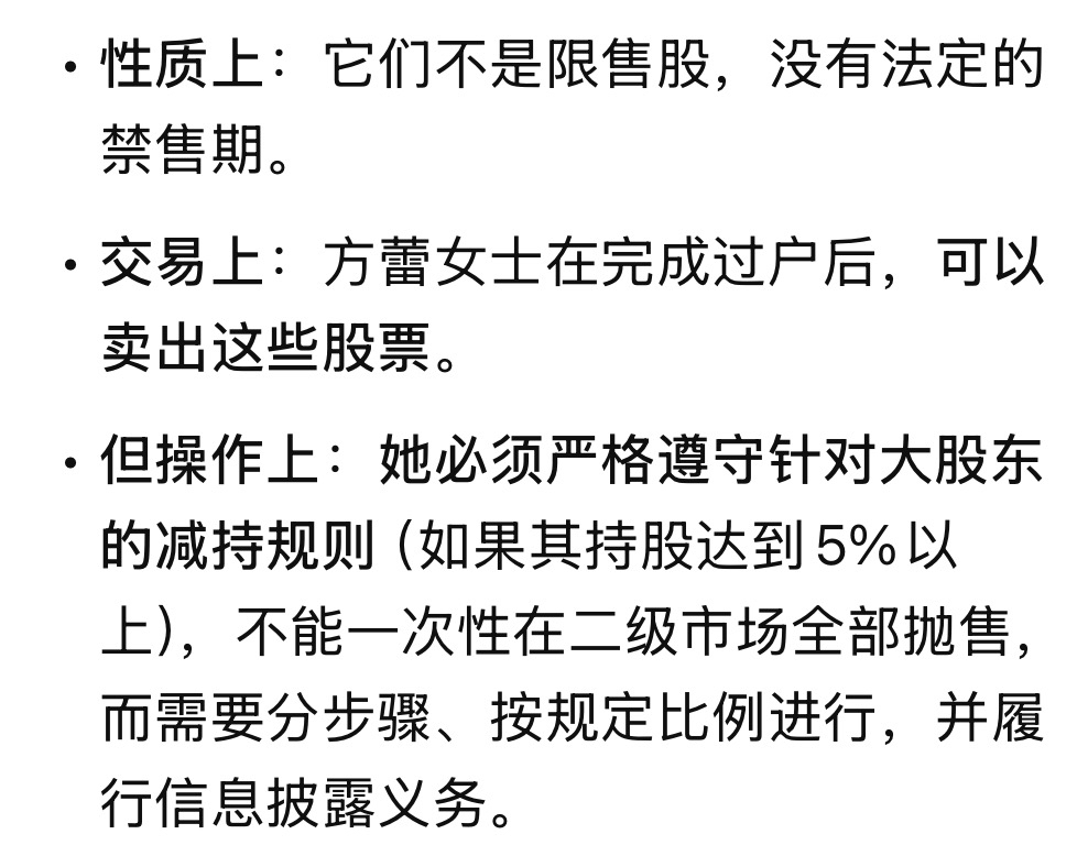 刚才还有人说方蕾的股票有半年的禁售期,在带节奏,首先这个股票是交易完成之后就可以