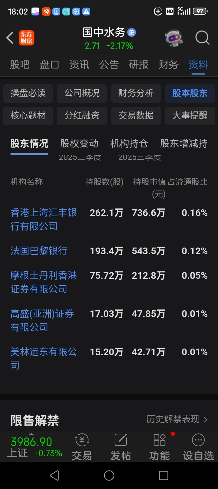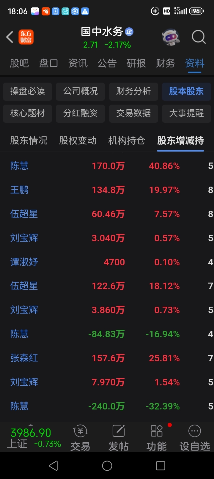 国中水务前十大股东。除了原控盘的,其他的股东都是增持的。大家试想一下。国中水务会
