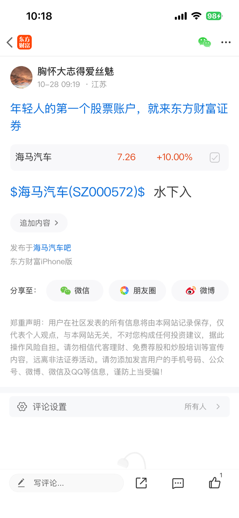 温馨提示: 1.根据《证券法》规定,禁止编造、传播虚假信息或者误导性信息,扰乱证券市场;2.用户在本社区发表的所有资料、言论等仅代表个人观点,与本网站立场无关,不对您构成任何投资建议。用户应基于自己的独立判断,自行决定证券投资并承担相应风险。《东方财富社区管理规定》